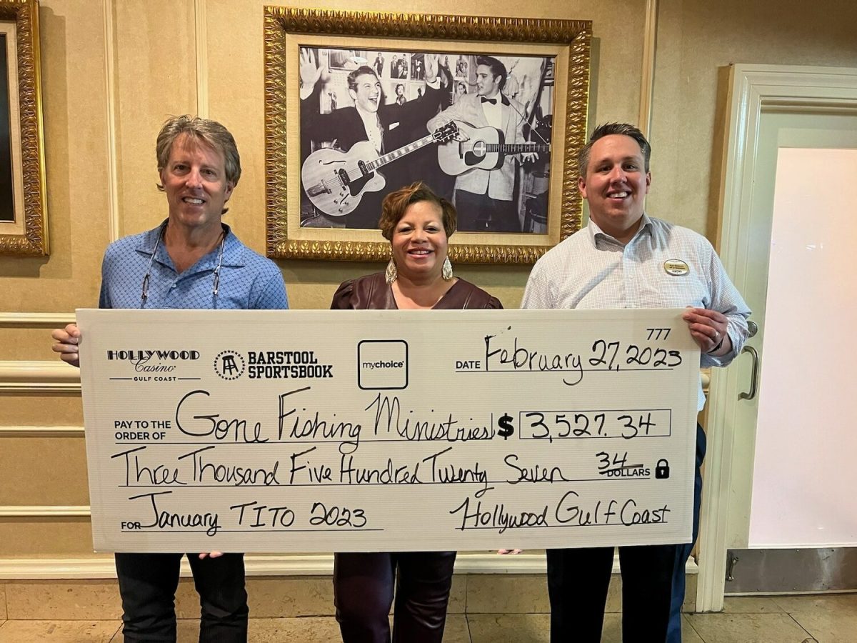 Gone Fishing Ministries, an all-volunteer organization established as an outgrowth of the Disaster Relief Committee of the Goodwill Missionary Baptist Church in Pass Christian, recently received a donation from the Hollywood Casino’s TITO program. GFM prepares, serves and delivers between 250 and 300 free, hot, nutritious meals each Monday and Wednesday to those in need in the Pass Christian Community. The program has been in place since 2006. For more information or to donate to this ministry, call 228-263-0703.