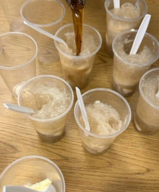 With the savory floats, the students could see first-hand how gas forms when a liquid, in this case, root beer, and a solid (ice cream) mix.