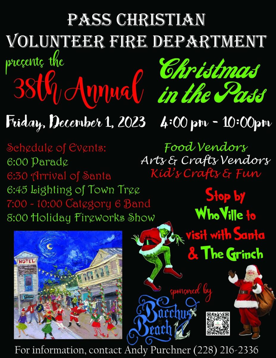 DETAILS: Join us for Christmas in the Pass 2023! It all begins at 4 pm on Friday, December 1st. There will be a “Whoville” set up near Hancock Bank with a screening of “The Grinch Who Stole Christmas”. There will be music, food, children’s activities, llamas (including a kissing booth), photo stations, arts and crafts and food vendors and more along Davis Avenue beginning at 4pm. Santa will visit with children and be available for photos in the Hancock Bank Annex.