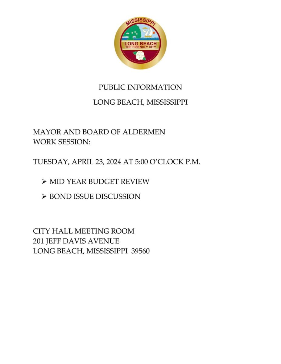 Mayor and Board of Aldermen Work Session Agenda, April 23, 2024 By superadmin | March 21, 2024 | 0 Mayor and Board of Aldermen Work Session, April 23, 2024 @ 5:00 P.M. City Hall Meeting Room201 Jeff Davis AvenueLong Beach, MS 39056 Posted in Area News, Mayor's Board of Aldermen Leave a Comment Name (required) Email (will not be published) (required) Comment Click here to cancel reply. Related Posts Community BINGO Night set for April 28 April 24, 2026 | No Comments » Community invited to gather for National Day of Prayer on May 7 April 23, 2026 | No Comments » GCCF receives Community Foundations National Standards® reaccreditation April 22, 2026 | No Comments » How To Reduce Distractions While Working Remotely April 21, 2026 | No Comments » The Biggest Packaging Challenges for Dairy Producers April 21, 2026 | No Comments »