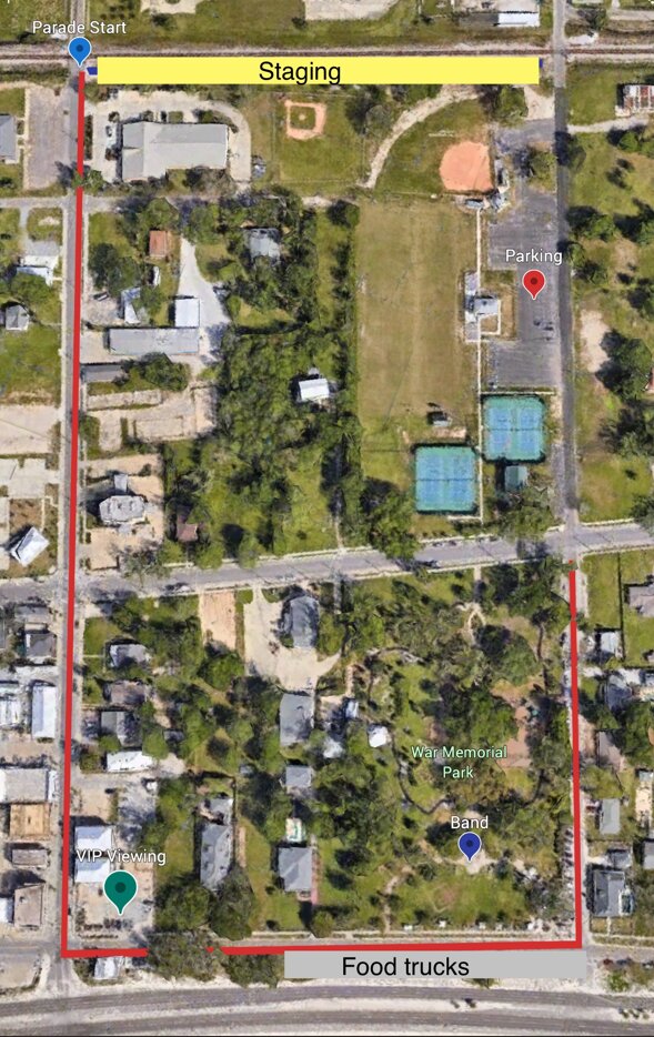 Food trucks and vendors are asked to decorate their vehicles or trailers as patriotically as possible. And be set up no later than 9:30 a.m. Trailers will need to be detached from vehicles to maximize space for all eight food trucks. The staging areas for food trucks and vendors will be on the south side of Scenic Drive on the southeast corner of the War Memorial Park, and points of contact for are Chris Colbert at 228-731-2795 and Sherry Hough 228-870-0571.