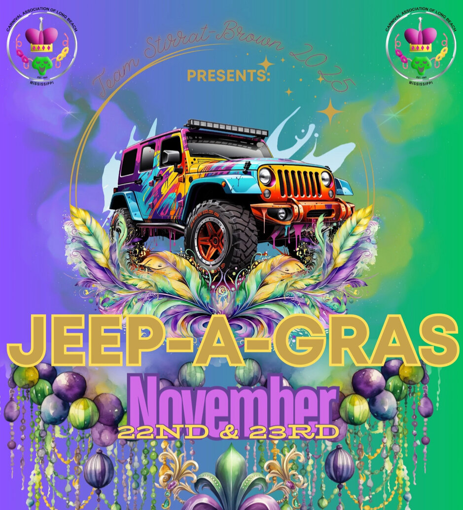 Jeep-A-Gras will be returning for its second year – and a little early this time around. Jeep drivers and enthusiasts will gather in the Friendly City for the 2nd Annual Jeep-A-Gras, scheduled to take place in Long Beach on Friday, November 22, and on Saturday, November 23.
