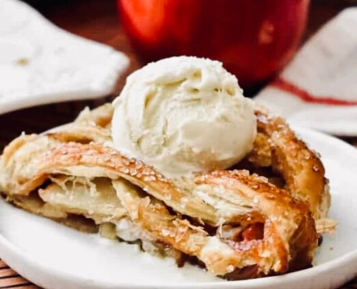 Preheat the oven to 350 degrees and line a baking sheet with parchment paper. Meanwhile, peel, core and cut the apples into small strips. Combine apples with lemon juice. Add cinnamon, sugar, almonds and vanilla extract. Set aside.