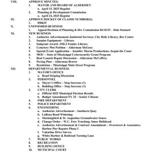 Mayor and Board of Aldermen Meeting Agenda, May 6, 2025 City Hall Meeting Room 201 Jeff Davis Ave Long Beach, MS 39560