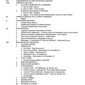 Mayor and Board of Aldermen Meeting Agenda, Tuesday, July 1, 2025 @ 5:00 PM City Hall Meeting Room 201 Jeff Davis Avenue Long Beach, MS 39560