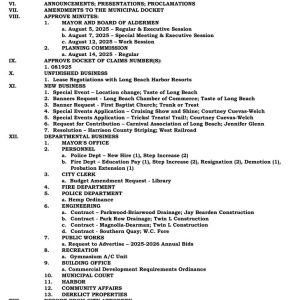 Mayor and Board of Aldermen Meeting Agenda, August 19, 2025 @ 5:00 PM City Hall Meeting Room 201 Jeff Davis Avenue Long Beach, MS 39560