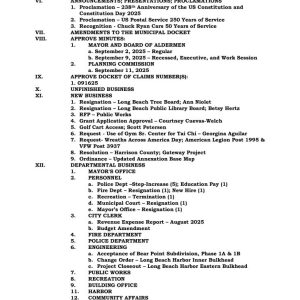 Mayor and Board of Aldermen Meeting Agenda, September 16, 2025 @5:00 PM City Hall Meeting Room 201 Jeff Davis Avenue Long Beach, MS 39560