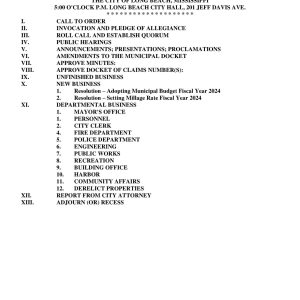 Mayor and Board of Alderman Meeting Agenda, September 12, 2023 at 5:00 PM City Hall Meeting Room 201 Jeff Davis Avenue Long Beach, MS 39560