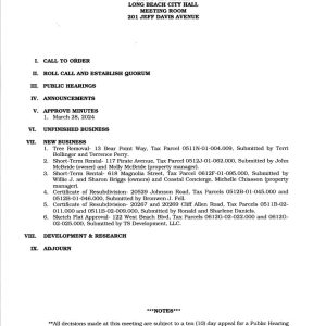 Planning and Development Commission Meeting Agenda, March 27, 2025 City Hall Meeting Room 201 Jeff Davis Ave Long Beach, MS 39560